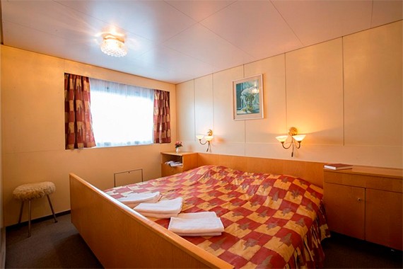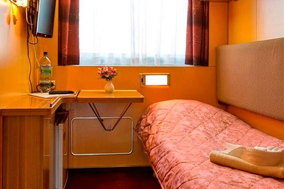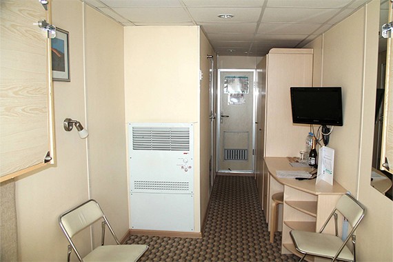 Двухместная каюта cо всеми удобствами, расположенная на главной палубе. Площадь каюты ≈ 9 м². В каюте: два спальных места, шкаф для одежды, холодильник, телевизор, фен, радио, ванная комната (раковина, душ, туалет), кондиционер, розетка 220V, обзорное окно.