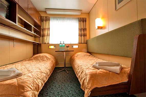Двухместная каюта cо всеми удобствами, расположенная на шлюпочной палубе. Площадь каюты ≈ 9,9 м². В каюте: два спальных места, шкаф для одежды, холодильник, телевизор, фен, радио, ванная комната (раковина, душ, туалет), кондиционер, розетка 220V, обзорное окно.