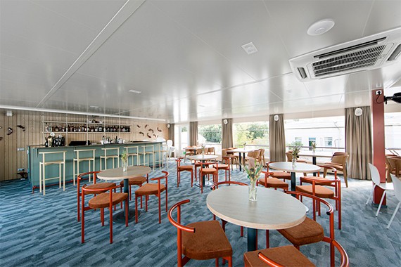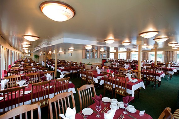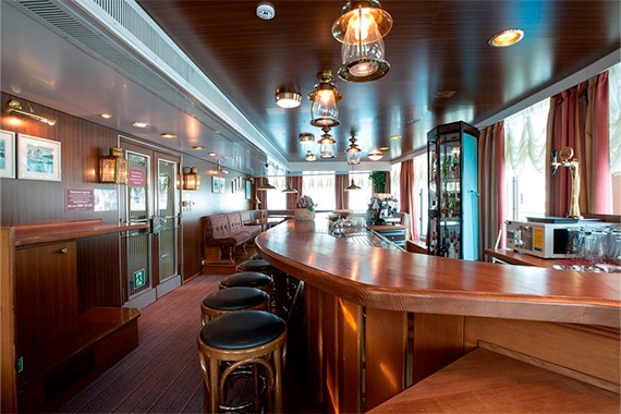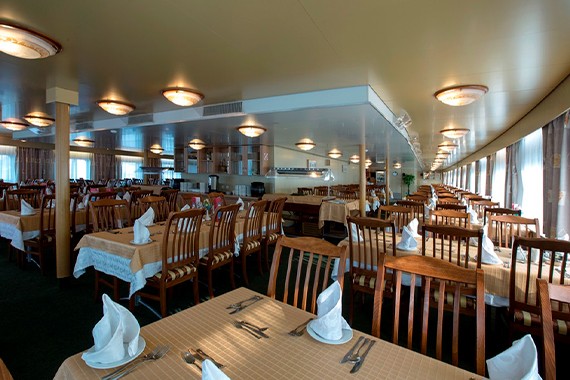 Элегантный ресторан с богатым выбором блюд европейской и русской кухни, предлагающий разнообразное меню с винами и десертами во время рейсов.