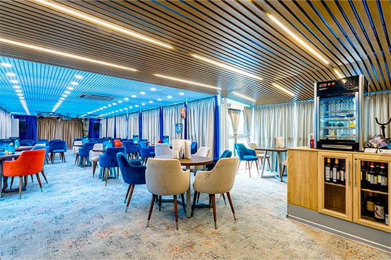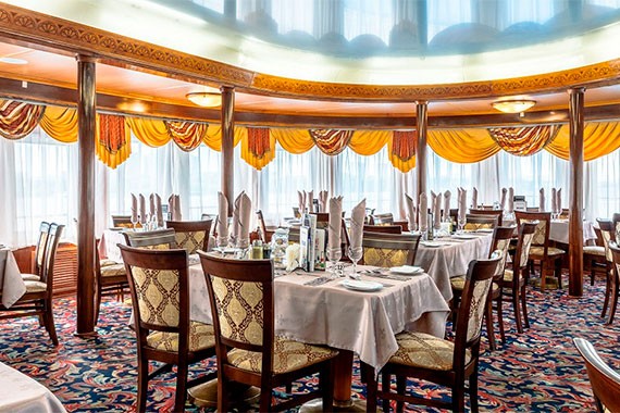 На борту теплохода есть два ресторана – на шлюпочной и главной палубах. Если у вас имеются особые требования к питанию или противопоказания на определенные продукты, сообщите об этом менеджеру при бронировании круиза, мы передадим ваши пожелания и блюдо будет приготовлено индивидуально. По запросу в ресторане есть диетическое меню и также есть детское меню. Дополнительно в лаундж-баре вы сможете порадовать себя вкусными напитками, закусками и десертами.