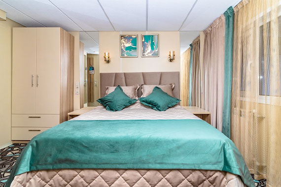 Для комфортного размещения вас ждут каюты от стандартных до полулюксов с балконом и даже люкса. Есть как много двухместных кают, так и одноместные, трех- и четырехместные. К навигации-2022 года на теплоходе полностью реконструирована зона кают на шлюпочной палубе – там появились новые каюты увеличенной площади с индивидуальными балконами. Стоимость кают напрямую зависит от их размеров и комфортности. Заселение происходит сразу после отправления судна.